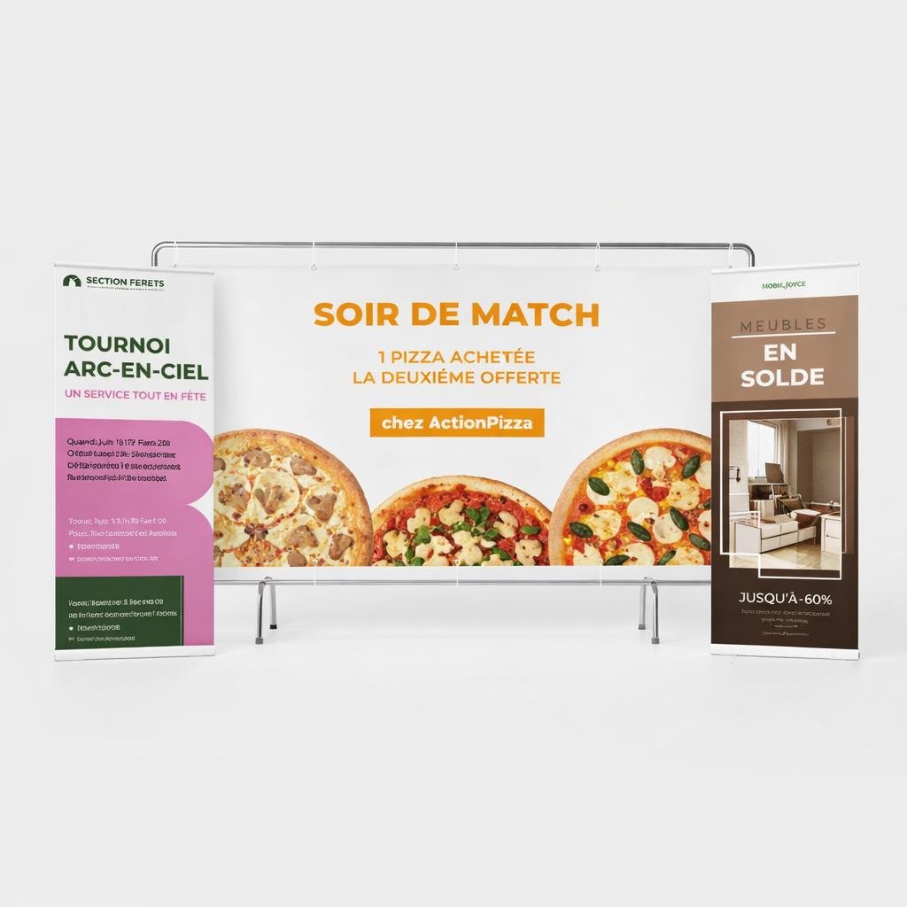 Bâches, vinyles, supports rigides, textile et affichage publicitaire : nous imprimons vos visuels avec précision pour une visibilité forte, sur tous types de supports.